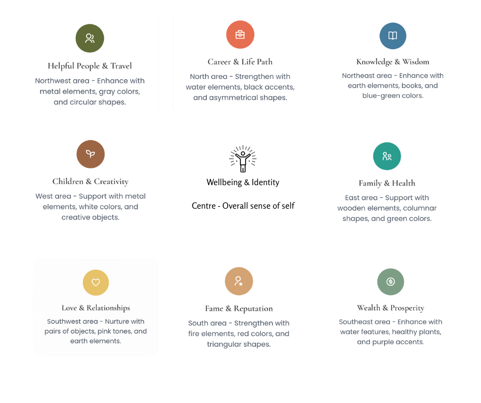 The Bagua Map is an essential tool in Feng Shui practice, dividing your space into eight areas, each corresponding to different aspects of life.
